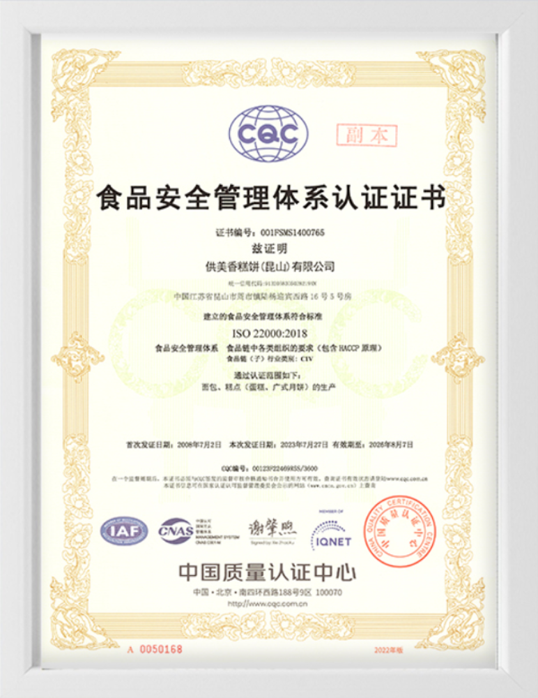 1996年,星空(中国)官方网站在江苏昆山注册成立了大陆分公司,总投资超过5000万元,星空(中国)官方网站占地面积超过13000平方米,拥有十万级净化车间,于2006年获得HACCP食品安全管理体系认证。目前在苏州地区拥有近三十家连锁专卖店和1座大型现代化中央工厂,拥有近200名的全职员工,每天为数以万计的家庭提供新鲜健康美味的食品,多次获得台湾食品品鉴会金牌奖,获得苏州名牌产品,昆山消费者最喜爱的品牌等荣誉称号。
